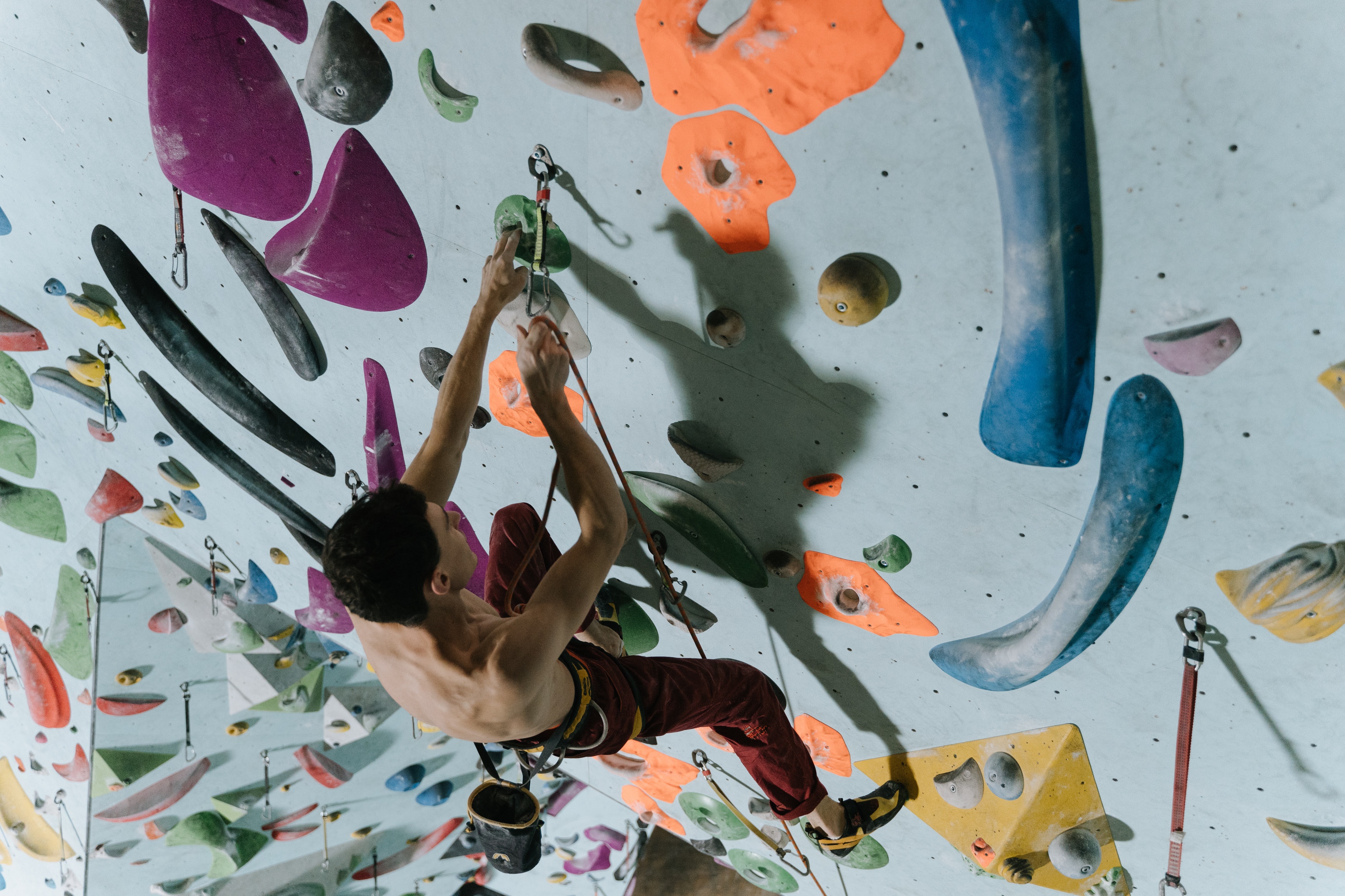是一项在天然岩壁或人工岩壁上进行的向上攀爬的运动项目,通常被归类为极限运动,攀岩运动要求人们在各种高度及不同角度的岩壁上,连续完成转身、引体向上、腾挪甚至跳跃等惊险动作,集健身、娱乐、竞技于一身,被称为“峭壁上的芭蕾”。